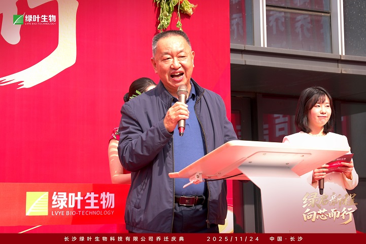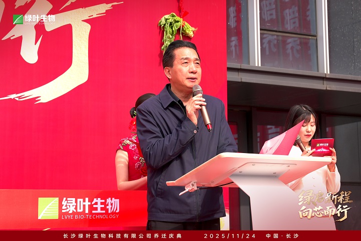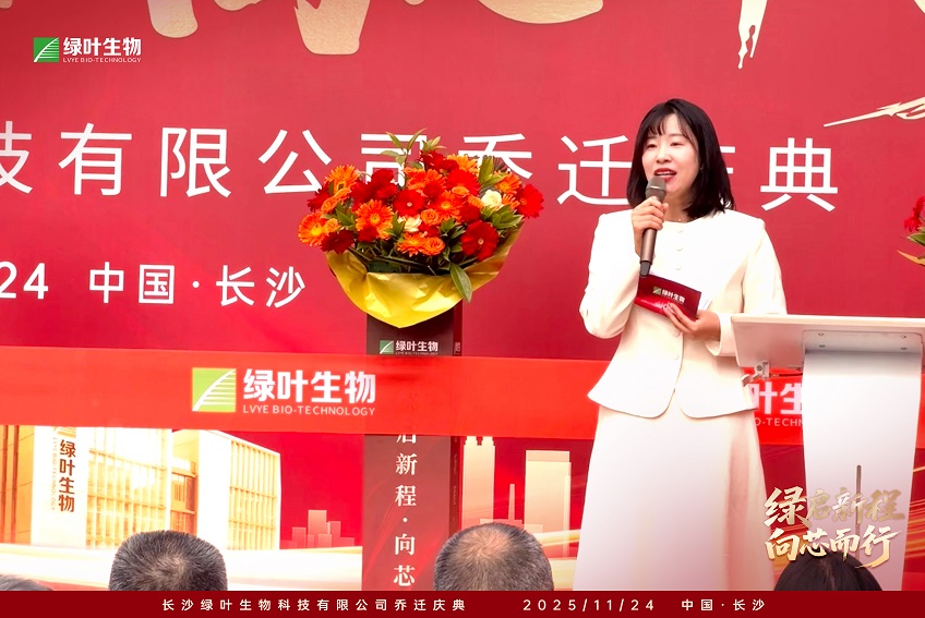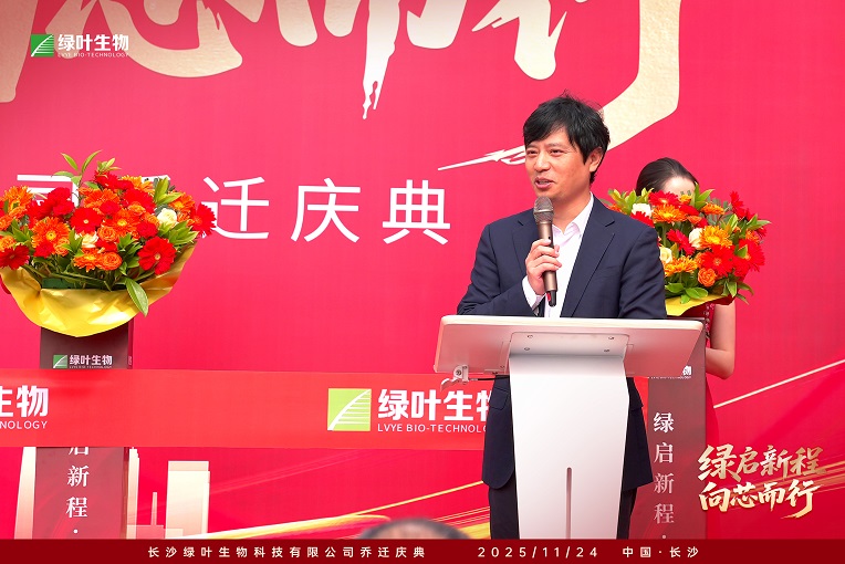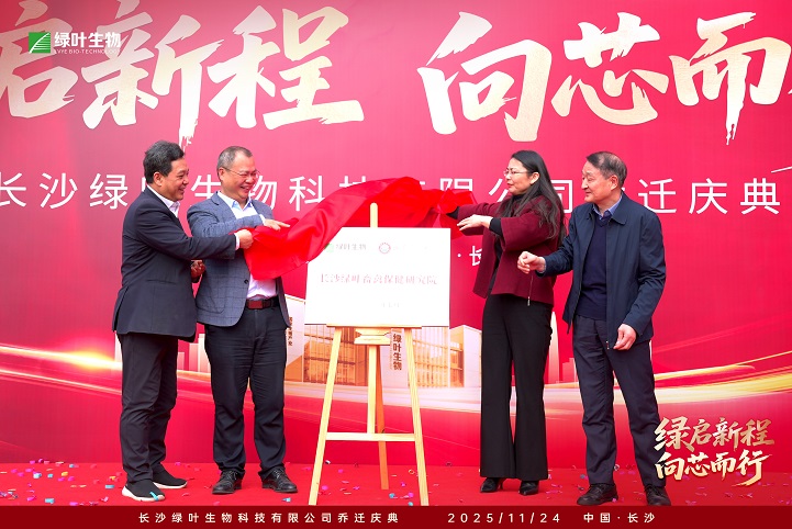 2025年11月24日,上午11时08分,长沙绿叶生物科技有限公司于长沙市芙蓉区东湖高新创智天地A7栋新址,隆重举行了以“绿启新程 向芯而行”为主题的总部中心乔迁庆典,此次活动标志着绿叶生物迈向全新的发展阶段。