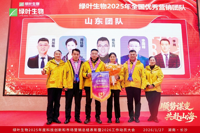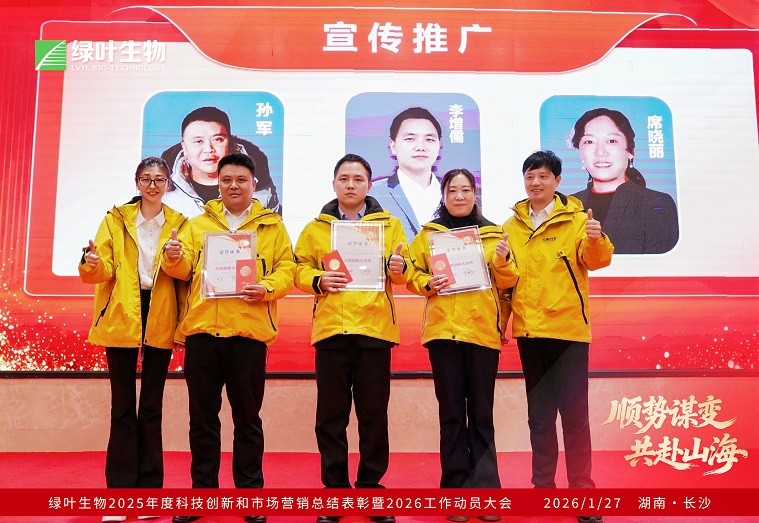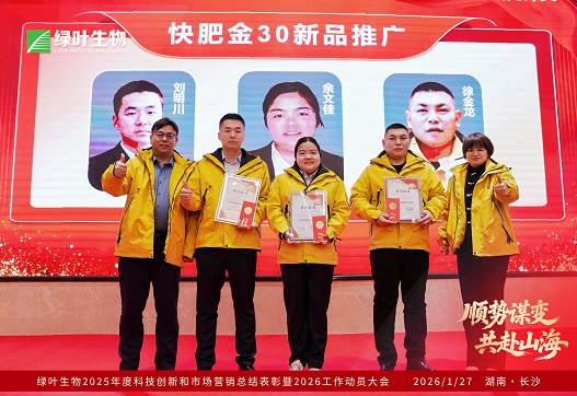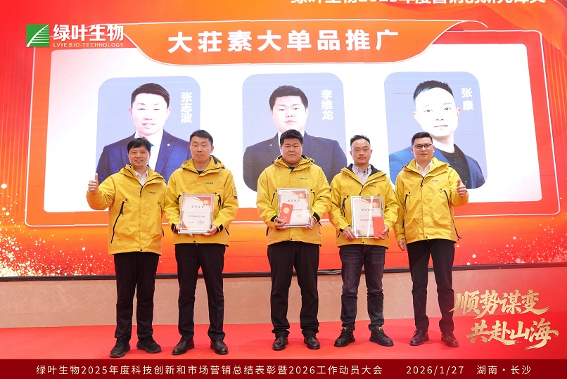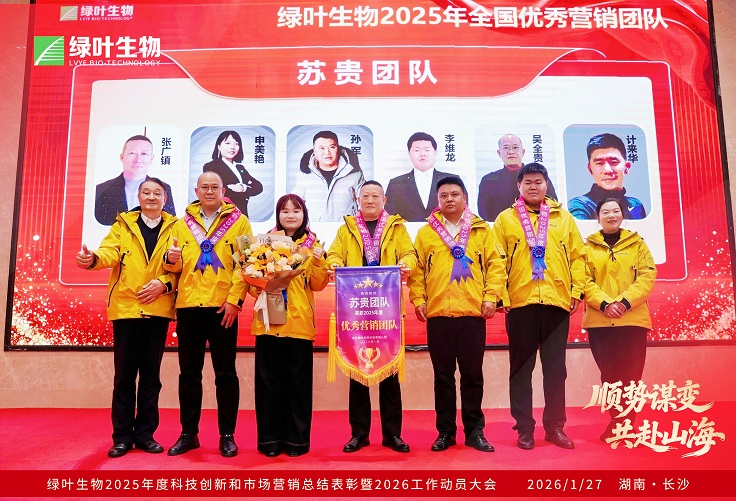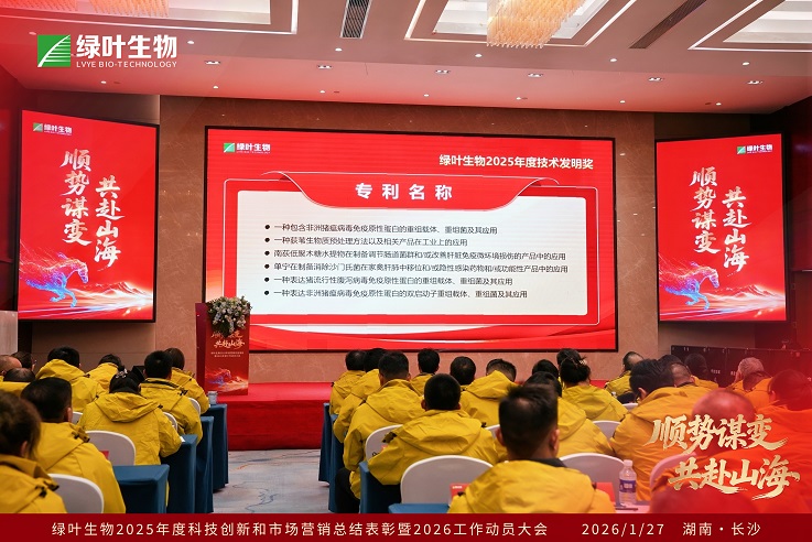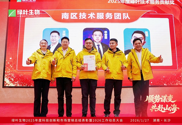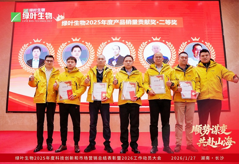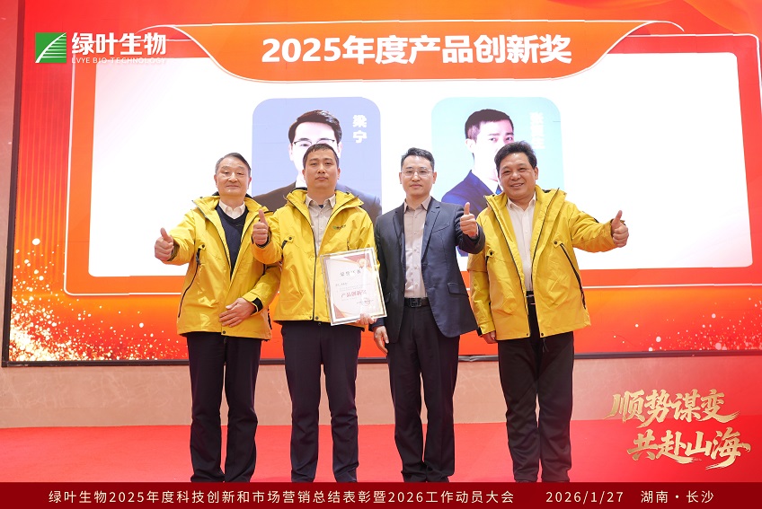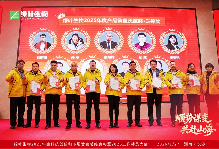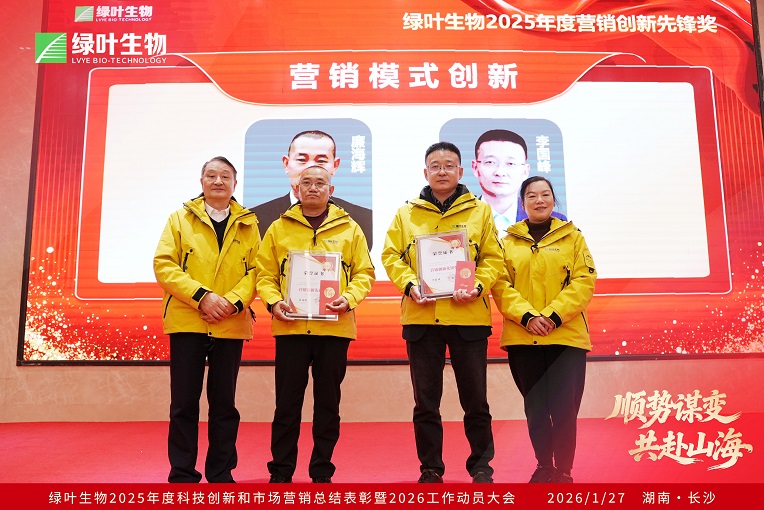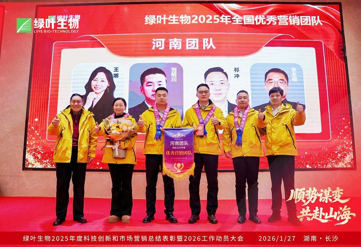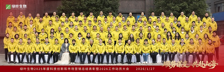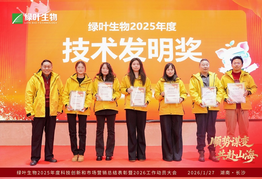 2026年1月27日,长沙绿叶生物科技有限公司以“顺势谋变 共赴山海"为主题,在湖南长沙华良华天假日酒店隆重召开2025年度科技创新和市场营销总结表彰暨2026工作动员大会。